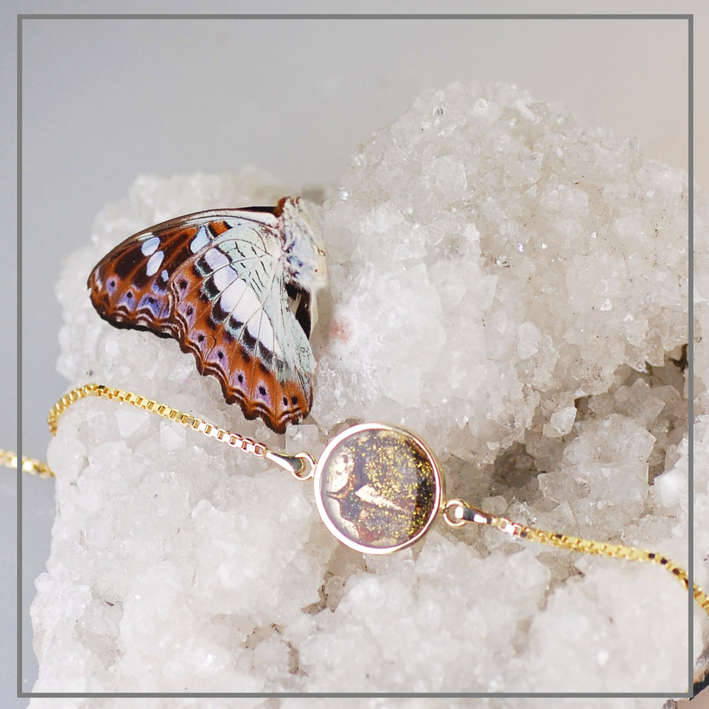 Je kiest zelf een vlinder uit. De foto dient als voorbeeld, sieraden kunnen nooit twee keer op dezelfde manier gemaakt worden.