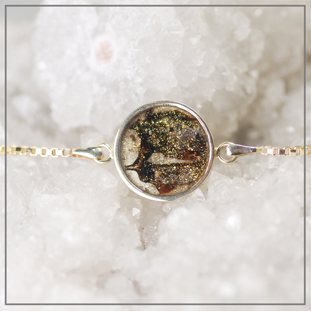 Draag de as met een vlindervleugel in deze prachtige 14K gouden armband.