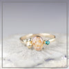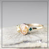 Een prachtig cluster van een ovaal ascomponent en wulpse, gouden balletjes aan één zijde. Een geboortesteen in een koninklijke zetting aan de andere zijde.