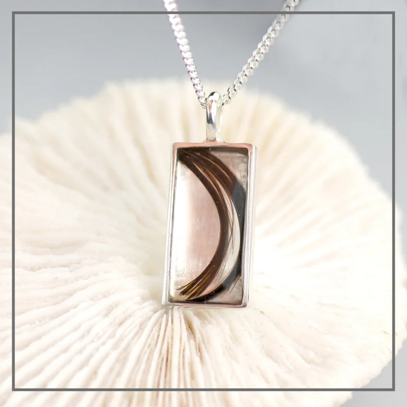 Mooie, massief witgouden hanger met een prachtig tot zijn recht komende lok haar.