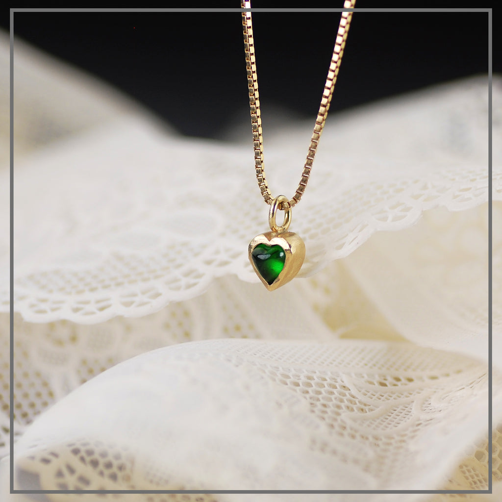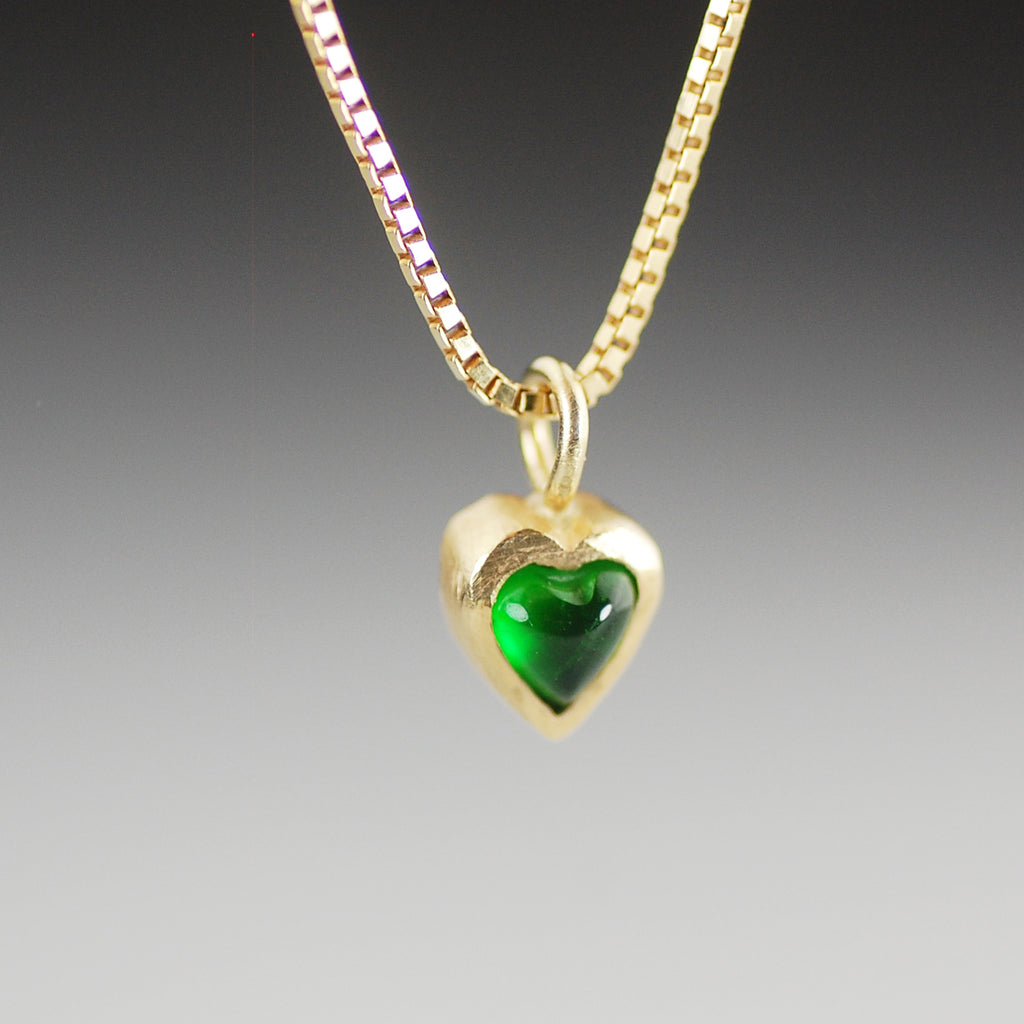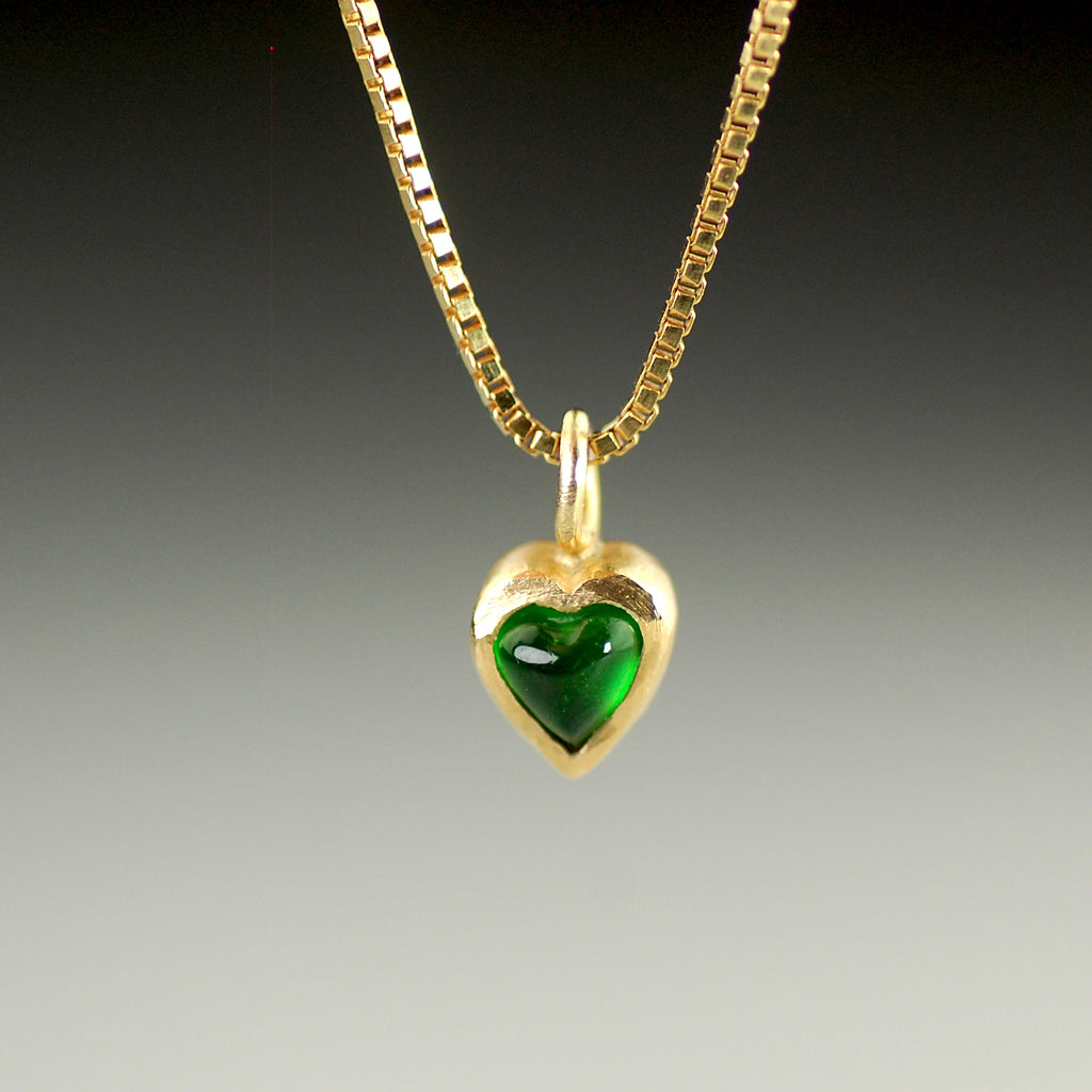 Ik heb een mat, ongepolijst, gouden hart met een Chrome Diopside gemaakt om mezelf te blijven herinneren goed voor mezelf te zorgen.