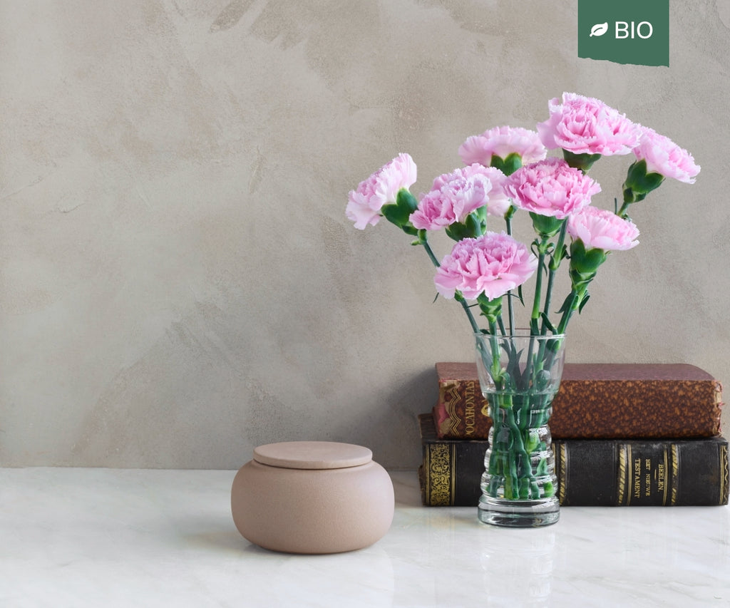 Deze kleine urn in ingetogen, natuurlijke klei is gemaakt voor een deel van de as.