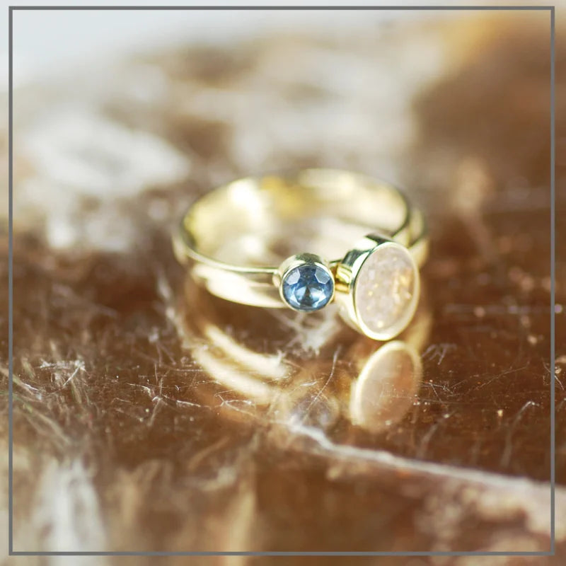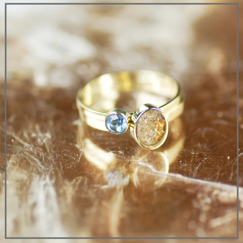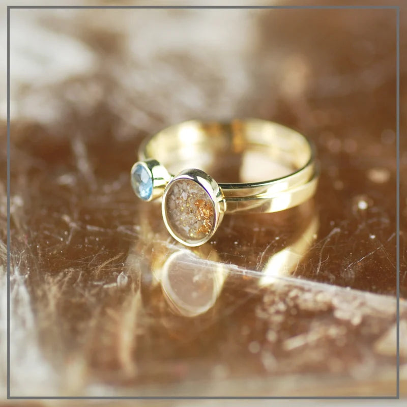 Naast de ring met as draag je een ring met geboortesteen naar keuze. Iedere maand van het jaar heeft een mooie edelsteen die daarbij past. Zo symboliseer je de persoon die je zo mist met een prachtige geboortesteen.
